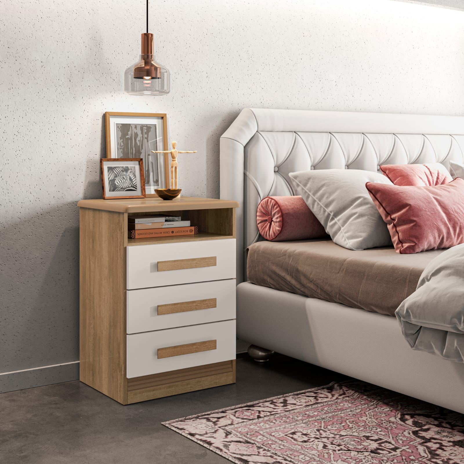 MESA DE CABECEIRA ROMA 3GAV NOCE/OFF WHITE LANZA